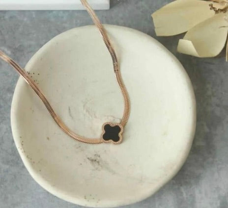 Elegant Noir RoseGold Stainless Steel Roman Chain Necklace