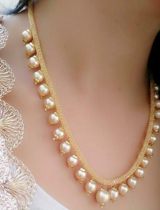 Modern Pearl Necklace, Mother of The Bride or Groom Gift, Double Circle, Pearl