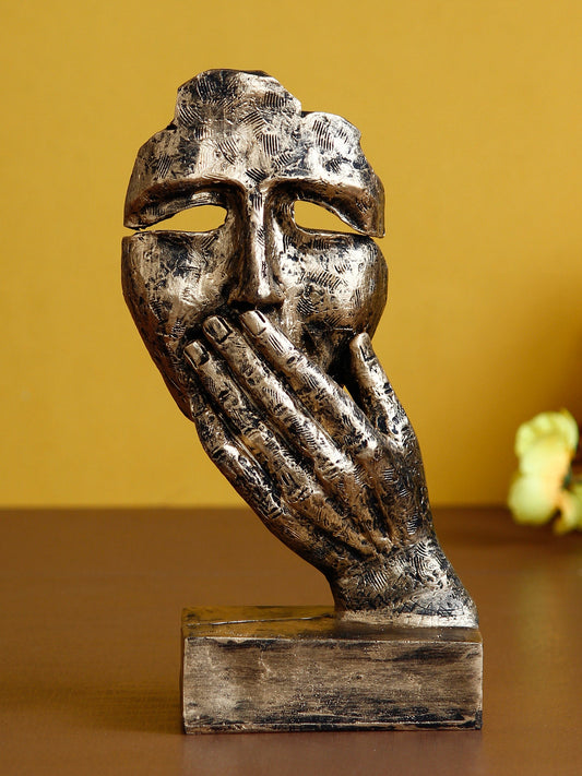 Polyresin Golden Human Face Statue Hand on Mouth Handcrafted Decorative Showpiece