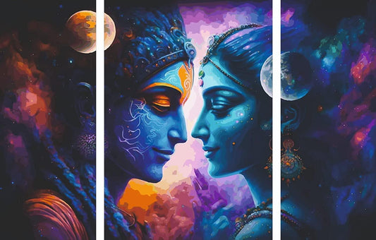 Set of 3 Radha Krishna MDF self Addhesive UV Printed Home Decorative Religious Gift Item,Radha Krishna Wooden Wall paintings For Home And Living Room -22.52 x 15 inches, Multi