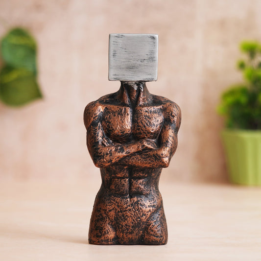 Shoppers Point India Copper, Silver Polyresin Men Statue Square Sign On Face Human Figurine Decorative Showpiece
