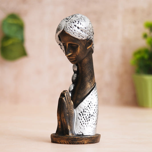 Shoppers Point India Silver and Brown Polyresin Handcrafted Women Praying Statue Human Figurine