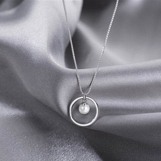 Modern Pearl Necklace, Mother of The Bride or Groom Gift, Double Circle, Pearl