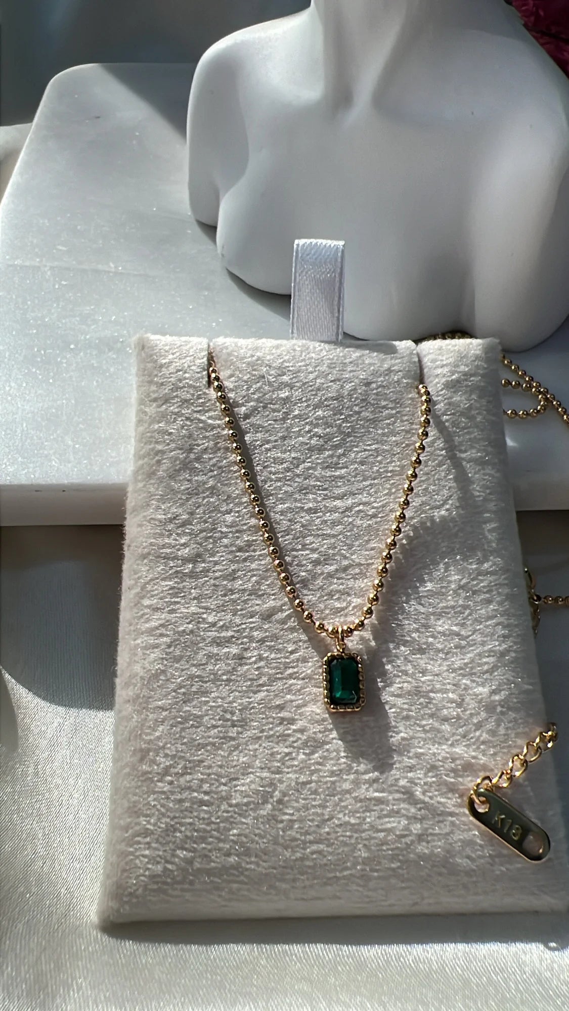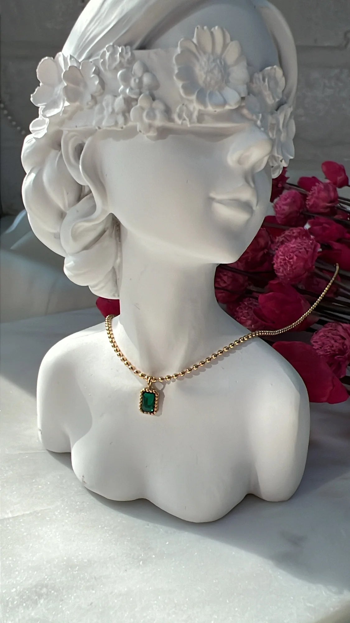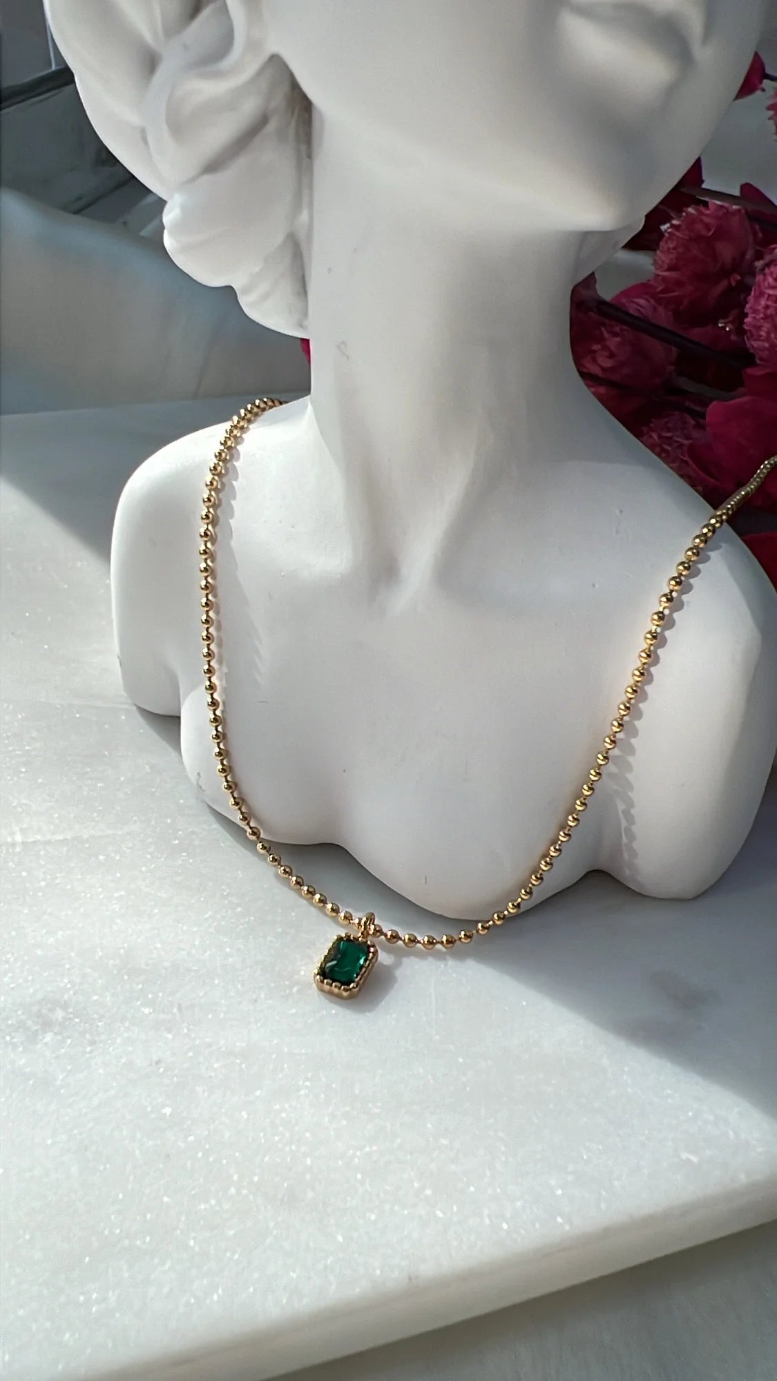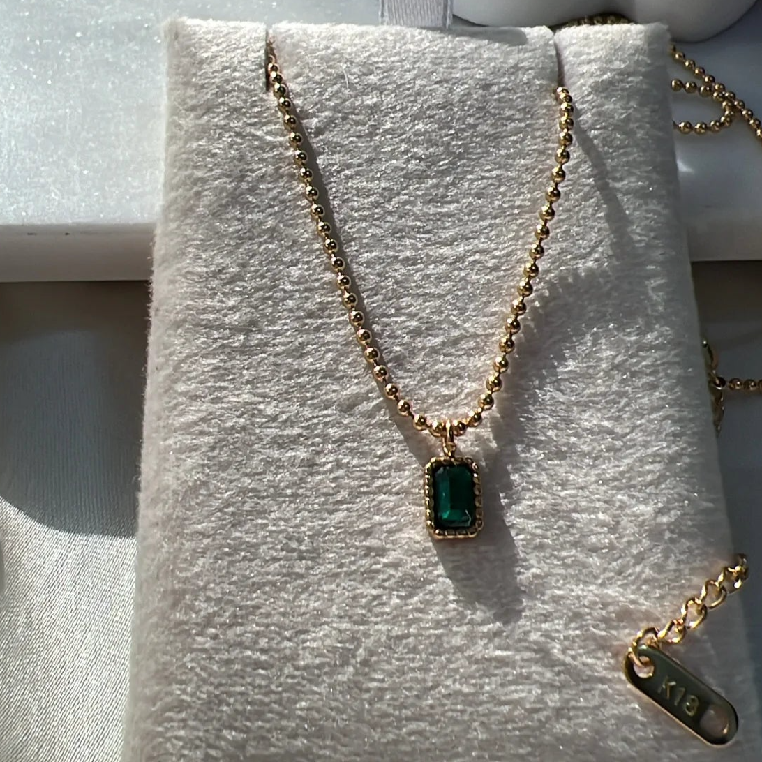 Stainless steel, gold plated beaded chain with beautiful minimal green charm  . It’s anti tarnish non corrosive and waterproof. It measures 16”-18”  with adjustable extensions