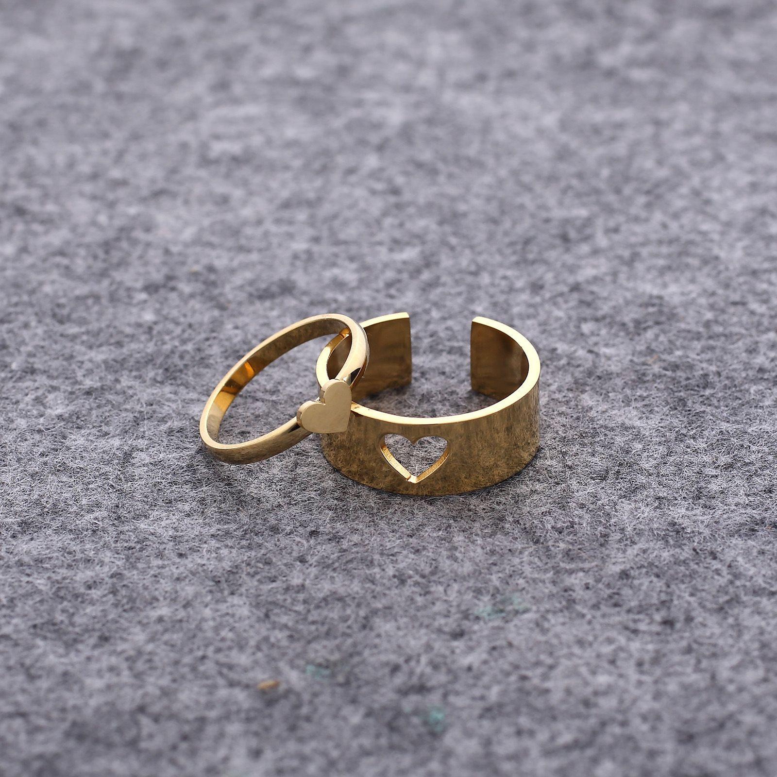 Combo of 2 Beautiful Gold Plated Heart Couple Rings