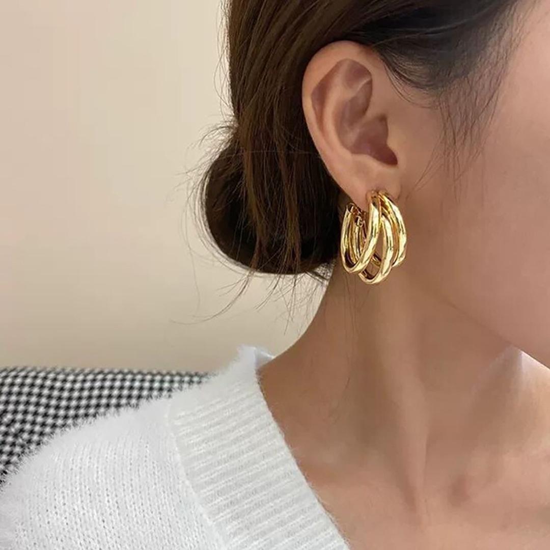 Gorgeous Silver plated korean Trihoop Earrings For Women and Girls
