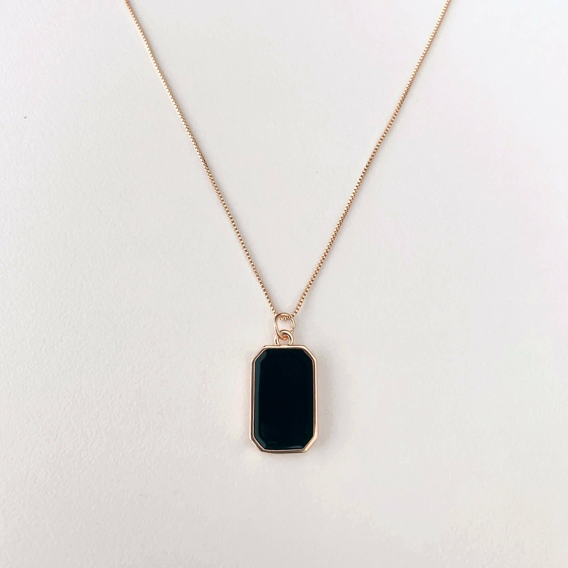 Black Onyx Rectangle Pendant Nacklace Girls & Women