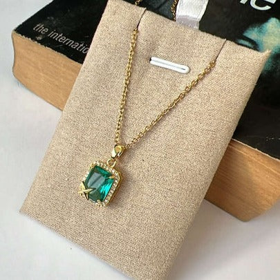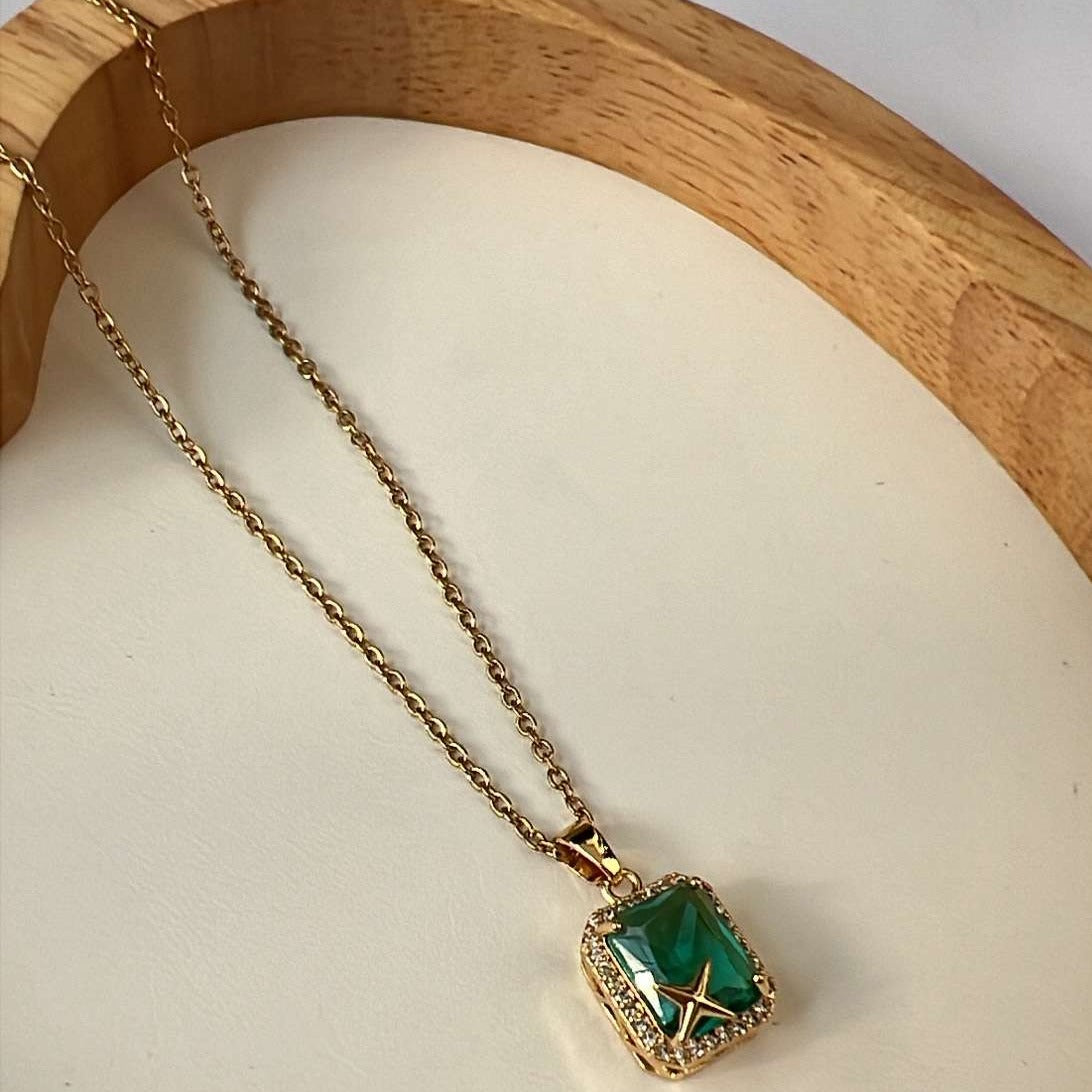 Discover the stunning Bria green neckpiece, featuring a golden green pendant adorned with sparkling zirconia. The durable Stainless Steel chain measures 18 inches in length and is coated in luxurious gold plating. Not only is it resistant to tarnishing and corrosion, but it is also waterproof, making it the perfect accessory for any occasion. Experience the beauty and quality of Bria today!