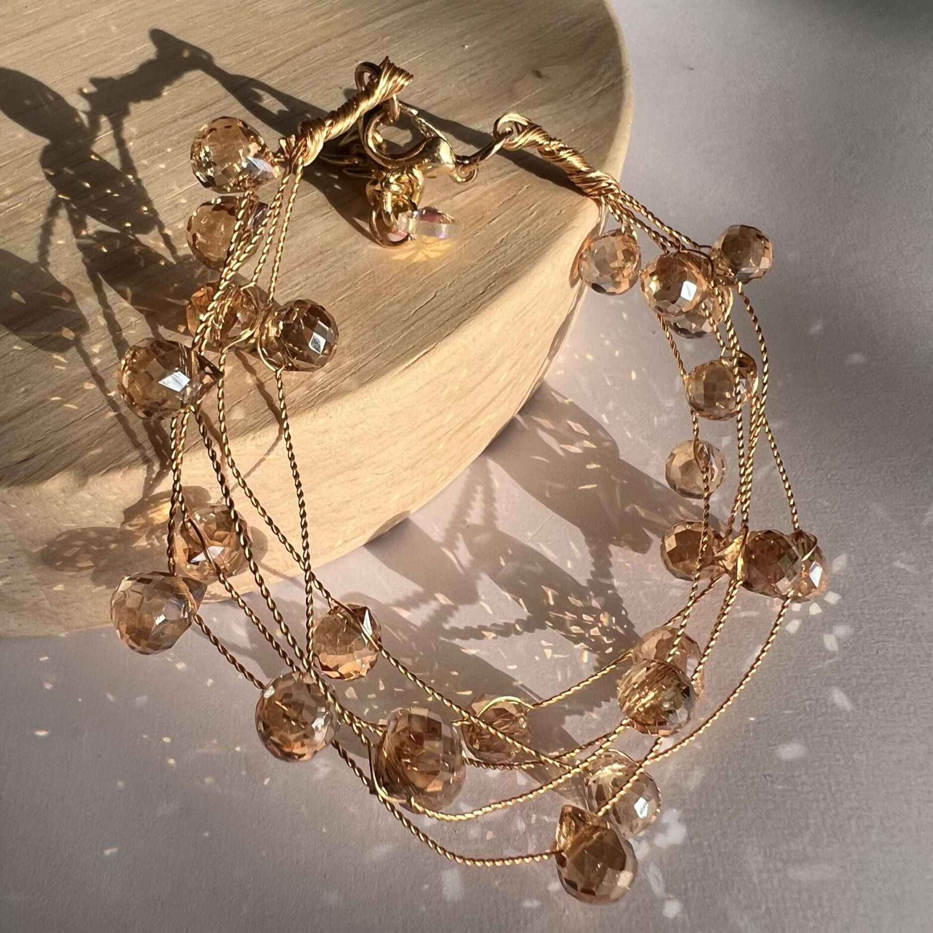 Stay stylish and elegant with our adjustable bronze crystal beads bracelet. Each layer is carefully crafted with non-corrosive material to prevent tarnishing and is waterproof for long-lasting wear. Make a statement and stand out from the crowd with this timeless piece!