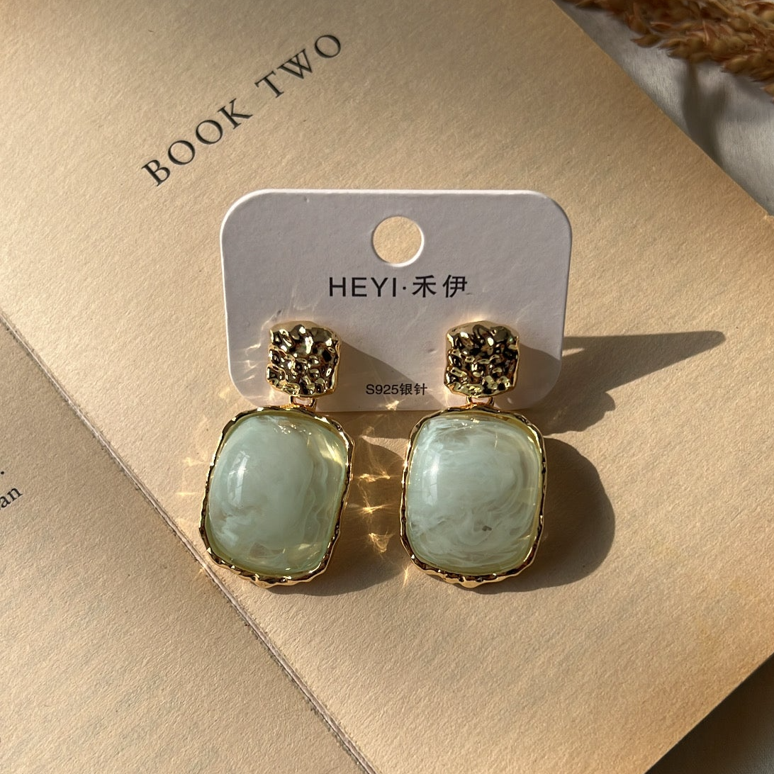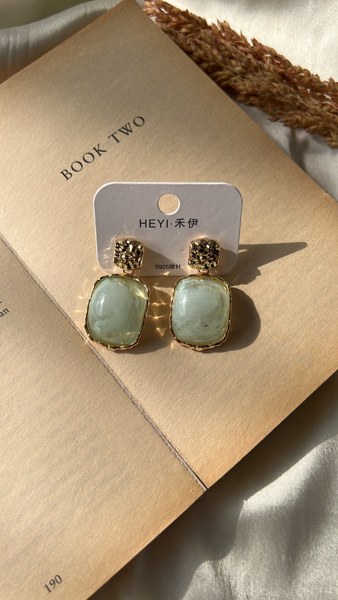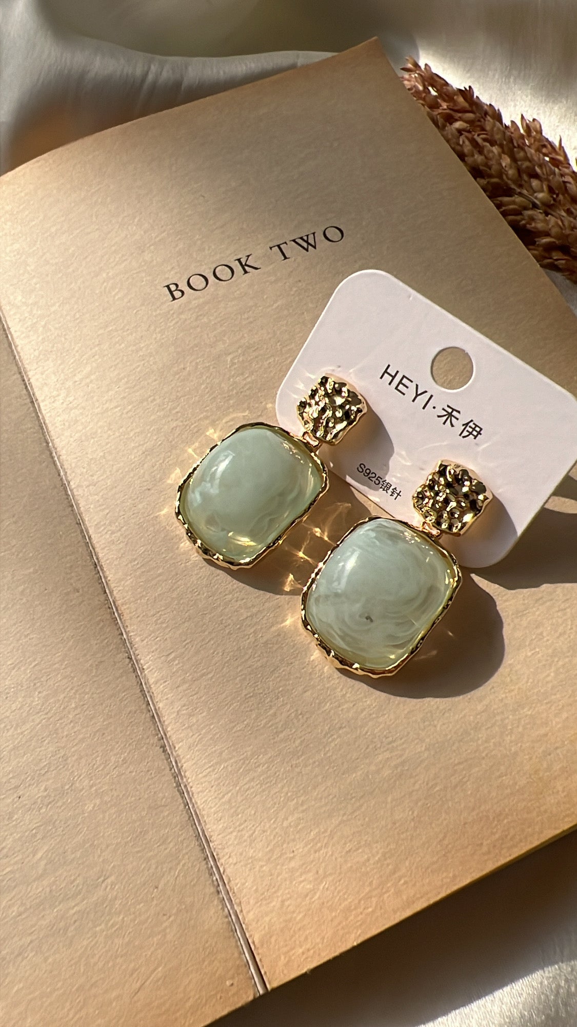 Introducing our stunning Cait drop earrings - featuring a delicate, geometric pastel mint green moonstone elegantly dangling from luxurious gold plated hooks. At a perfect 4cms in length, these earrings are not only anti-tarnish and non-corrosive, but also waterproof. Trust us, these earrings will not disappoint!