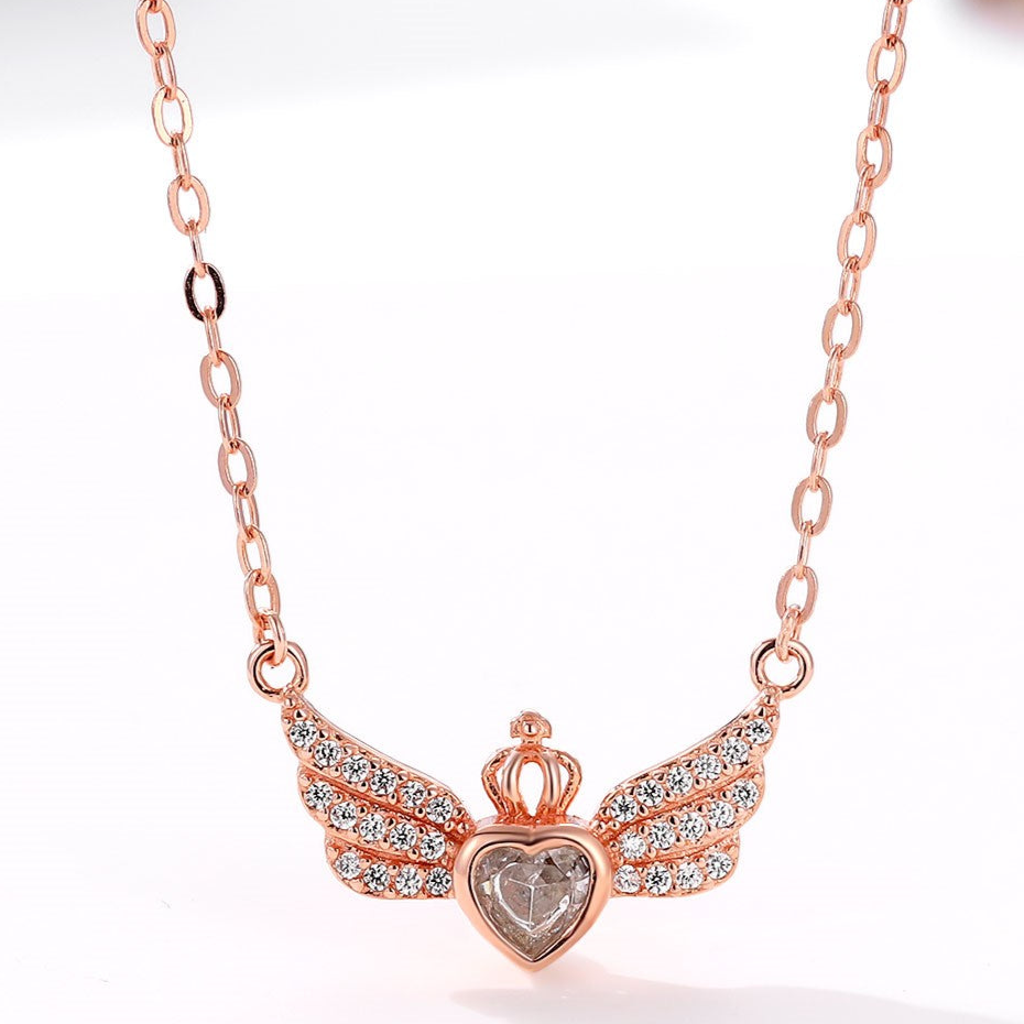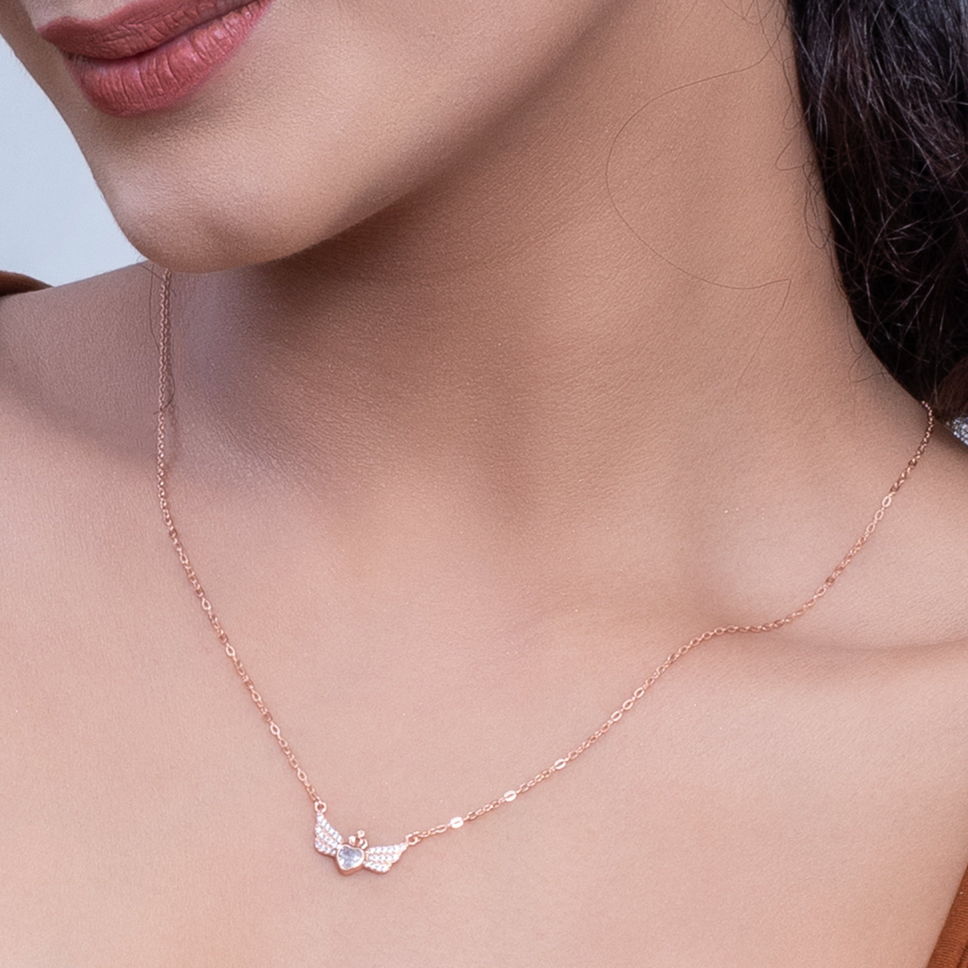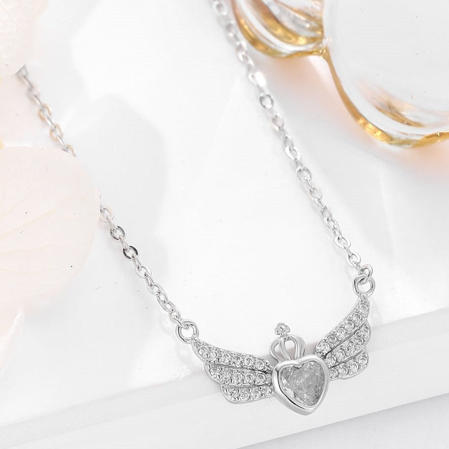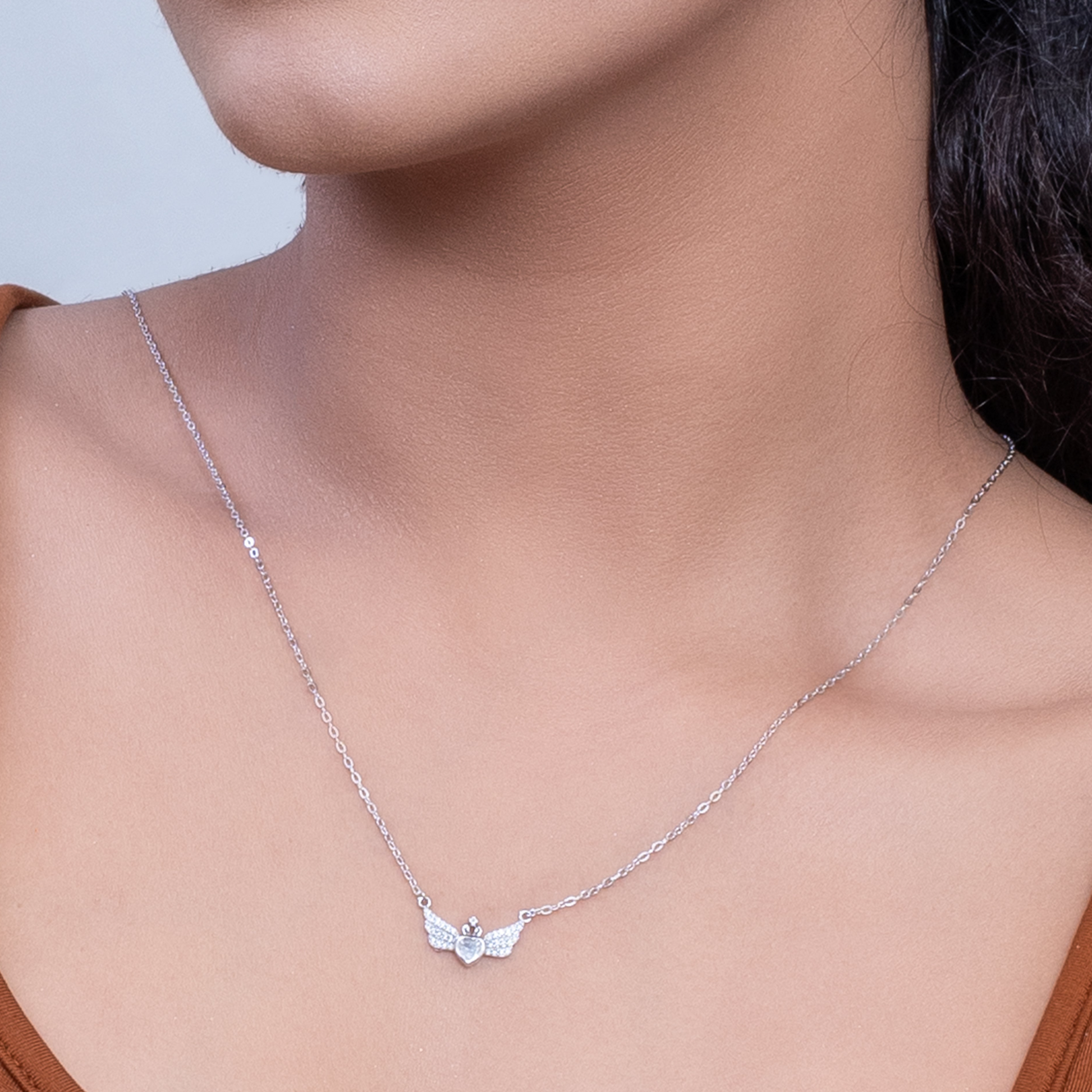 The Heart Stone with Crown and Wings motif at the center of the Regal Heart chain is a captivating piece of art, minimalistic yet striking in its design. Adorned with zircon on its wings, the silver finish adds a touch of sophistication and versatility, making it perfect for everyday wear or special occasions.