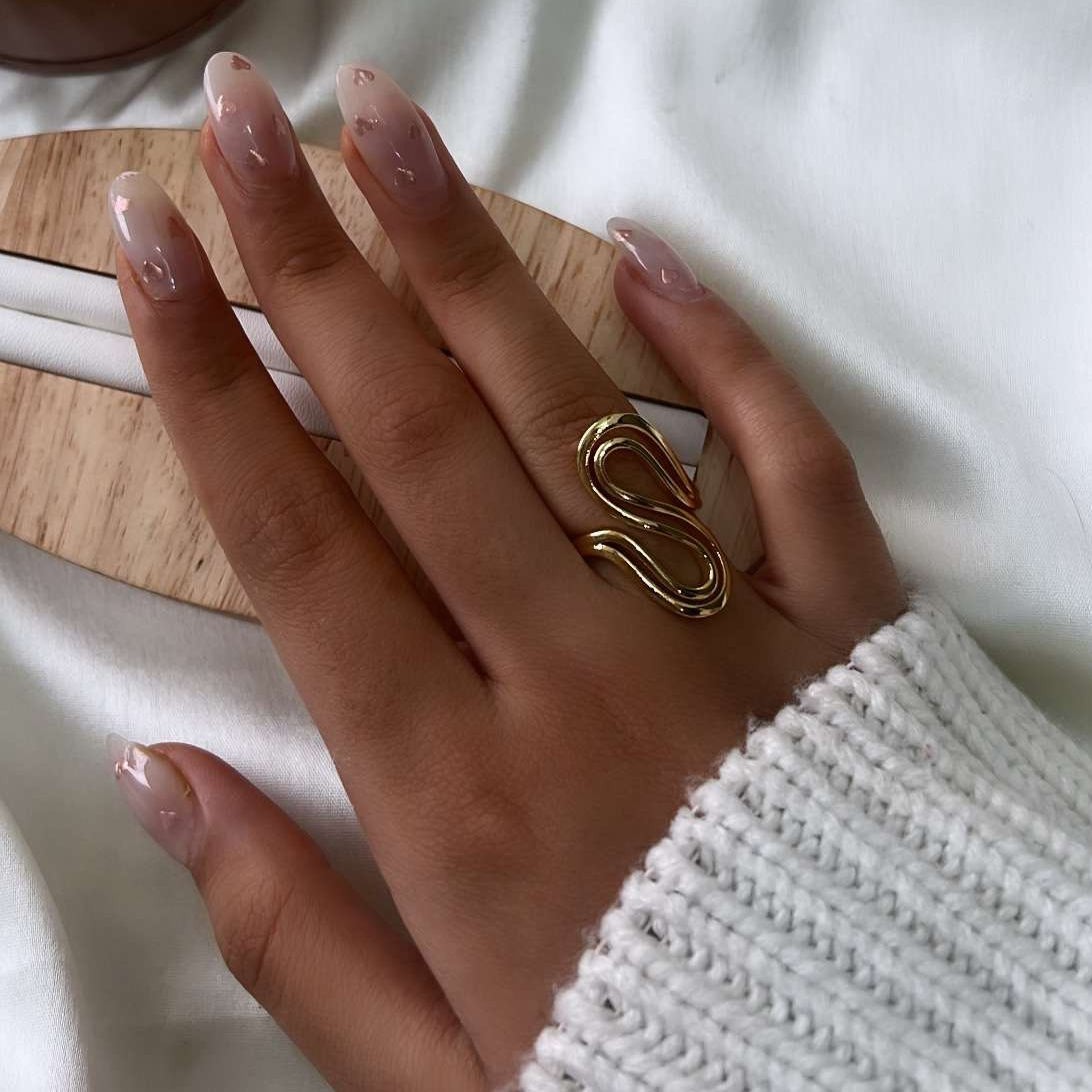 This S shaped open ring with stones is sure to impress! Designed to fit those who wear a size 7-8, it boasts gold plating, anti-tarnish properties, hypoallergenic materials, and waterproof durability.
