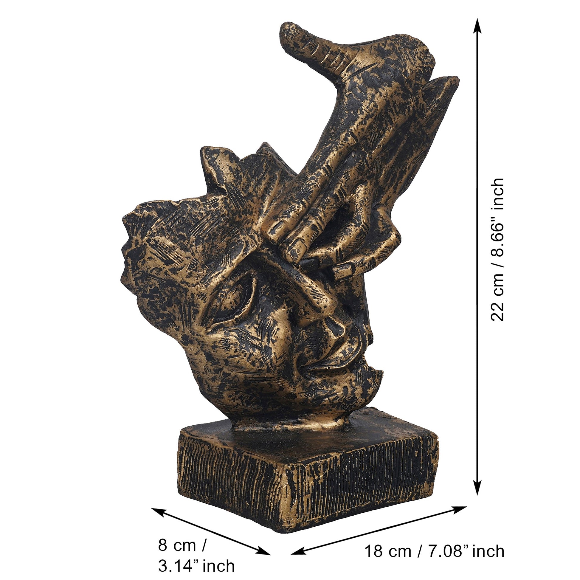 Product Description - Unveil the mystique of Shoppers Point India's Brown Polyresin Antique Human Face Sculpture, a captivating masterpiece that transcends time and adds an intriguing allure to your decor. This exquisite figurine, with its hand on the eye, symbolizes introspection and deep thought. Perfect for gracing your living room, study, or office, it sparks conversations and contemplation. Whether you seek a unique decor item or a thoughtful gift, this sculpture is a timeless choice. Present it on special occasions to inspire creativity and reflection, as its intricate detailing and antique finish bring an air of enigma to any space, making it a remarkable conversation starter.