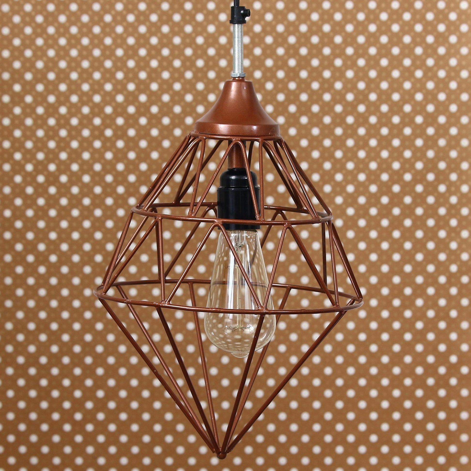Edison Filament Copper Finish Diamond Cage Pendant Light, Ceiling Hanging Lamp For Home/Living Room/Offices/Restaurants