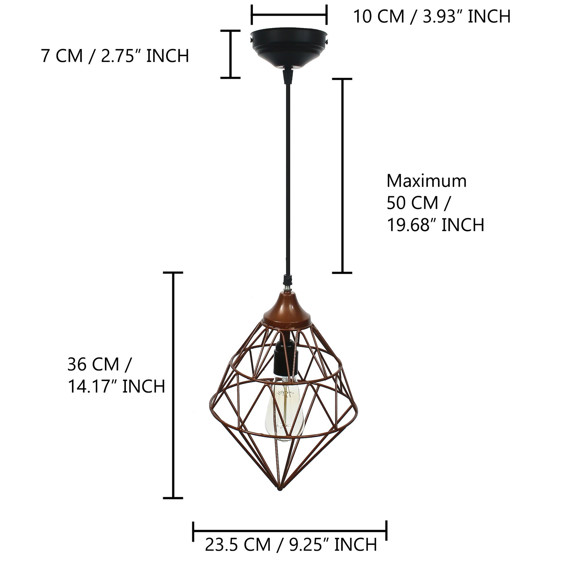 Package Content - One Edison Filament Copper Finish Diamond Cage Pendant Light, Ceiling Hanging Lamp for Home/Living Room/Offices/Restaurants