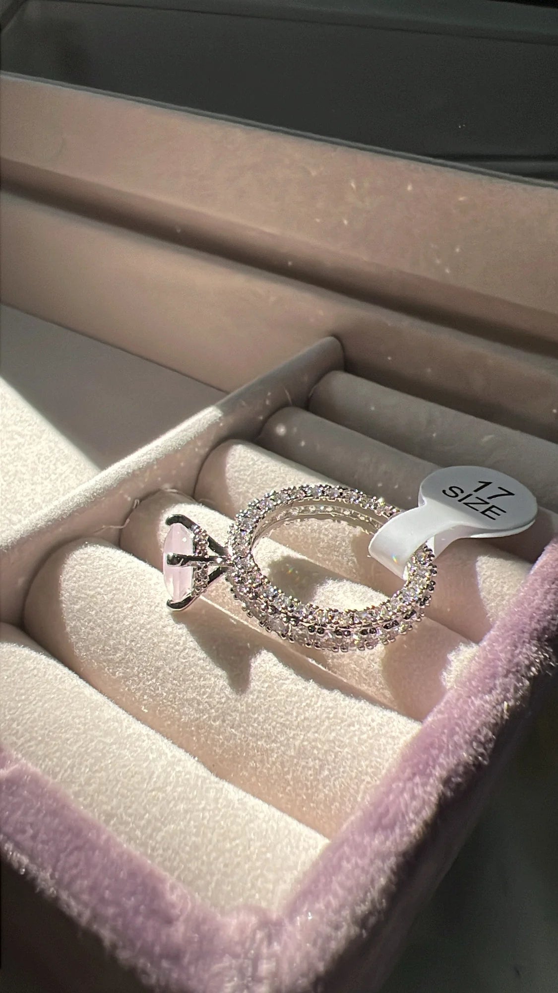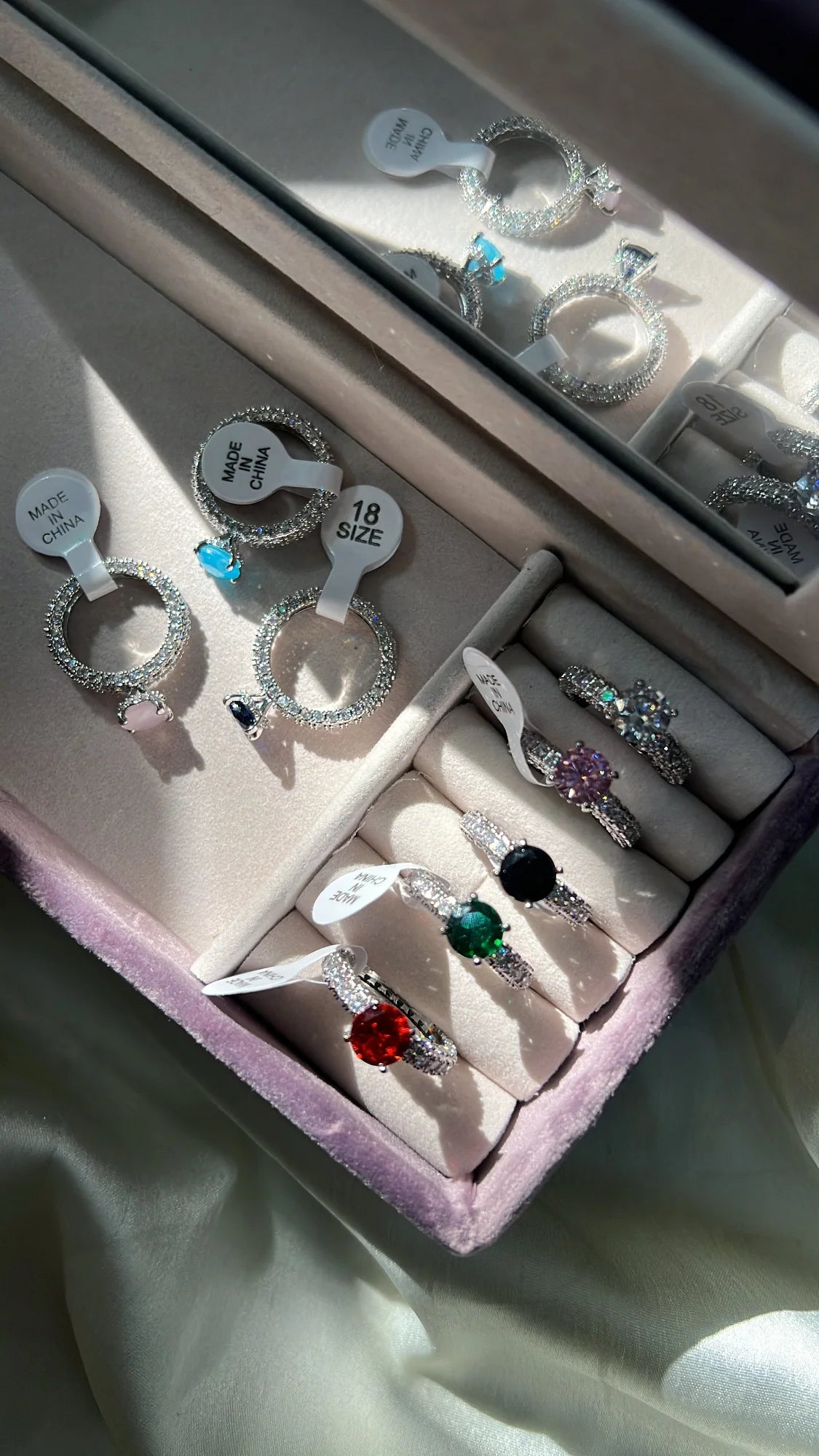 Add a touch of sparkle to any outfit with our Evie Rings! Crafted with silver plating, it features a round crystal embellishment on top and is adorned with stones on all sides. Anti-tarnish and non-corrosive, this waterproof ring is perfect for everyday wear. Available in a universal size of 17-18.