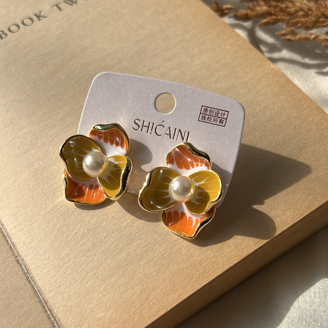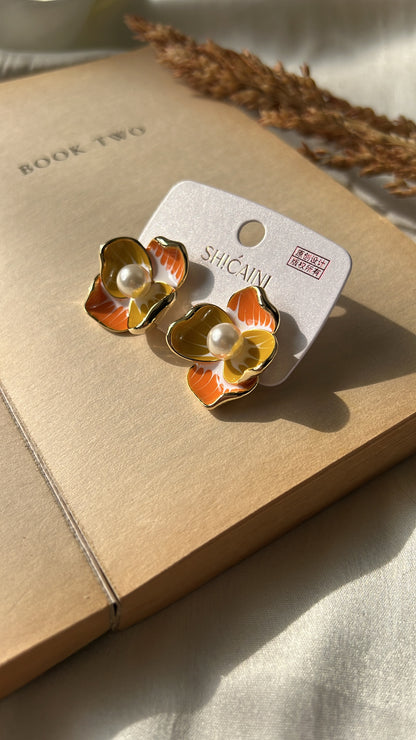 Get ready to add a touch of elegance to any outfit with our Flora studs. These gold plated and enamel painted flower stud earrings are adorned with a pearl, adding a delicate and sophisticated touch. Measuring at 3 cm, they are anti-tarnish, non-corrosive, and waterproof for long-lasting wear. Elevate your style and make a statement with Flora studs!