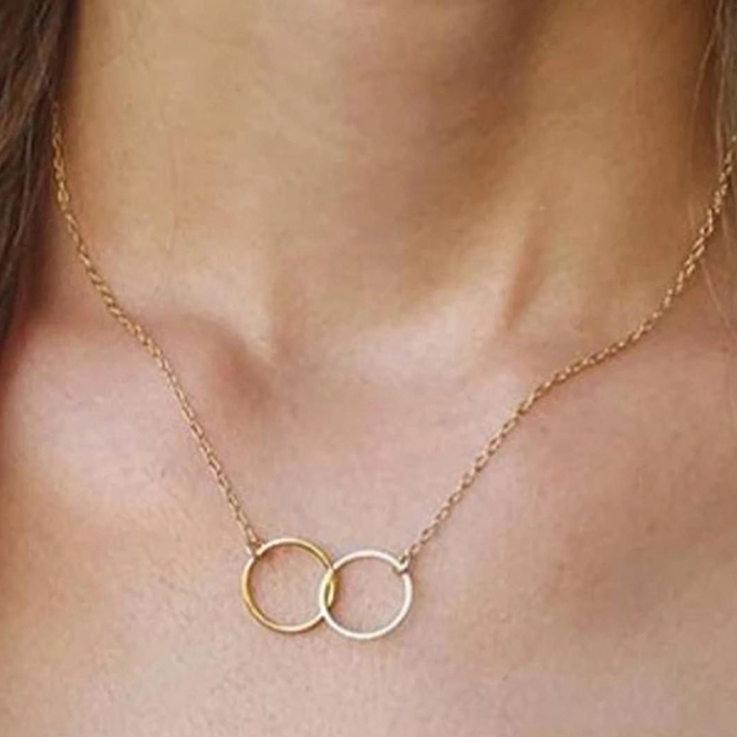 Introducing the "Gilded Chic" Gold Plated Double Circle Necklace – a singular piece that seamlessly blends style and sophistication.