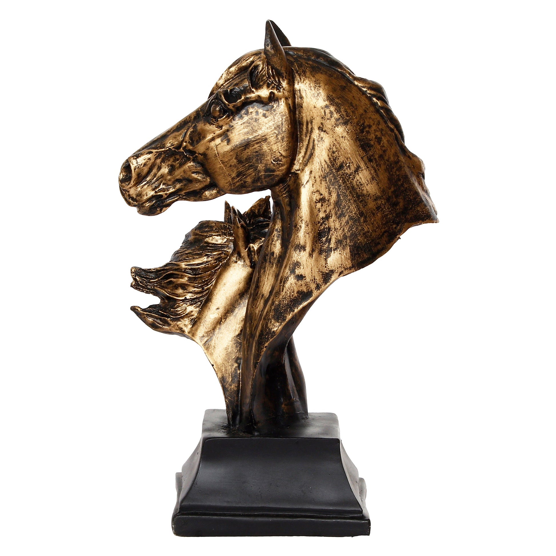 Package Content - One Antique Finish Horse Couple Face Handcrafted Polyresin Decorative Showpiece