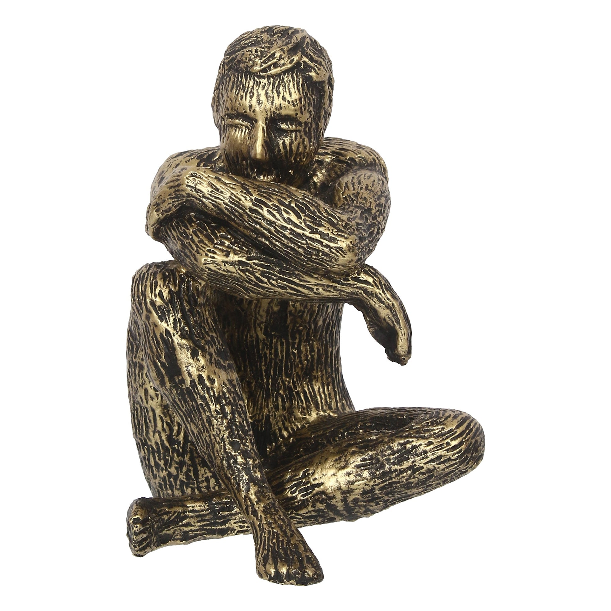 Golden and Black Polyresin Man Figurine Sitting in Thinking Position