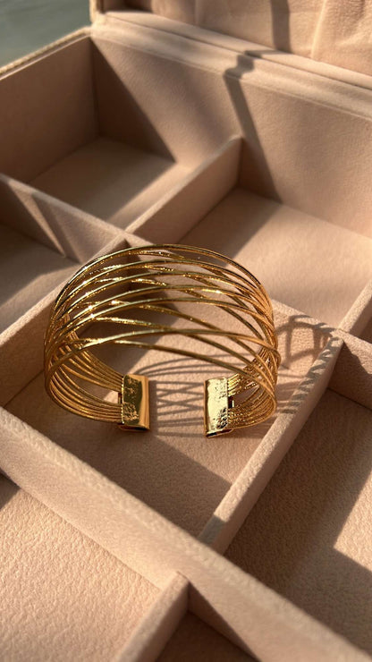 Elevate your outfit with the Haven gold cuff, a subtle yet glamorous statement piece. Made with high quality alloy, this wide gold cuff is versatile and pairs well with both ethnic and western wear. Make a statement with this stunning piece that can stand alone for a bold and stylish look.