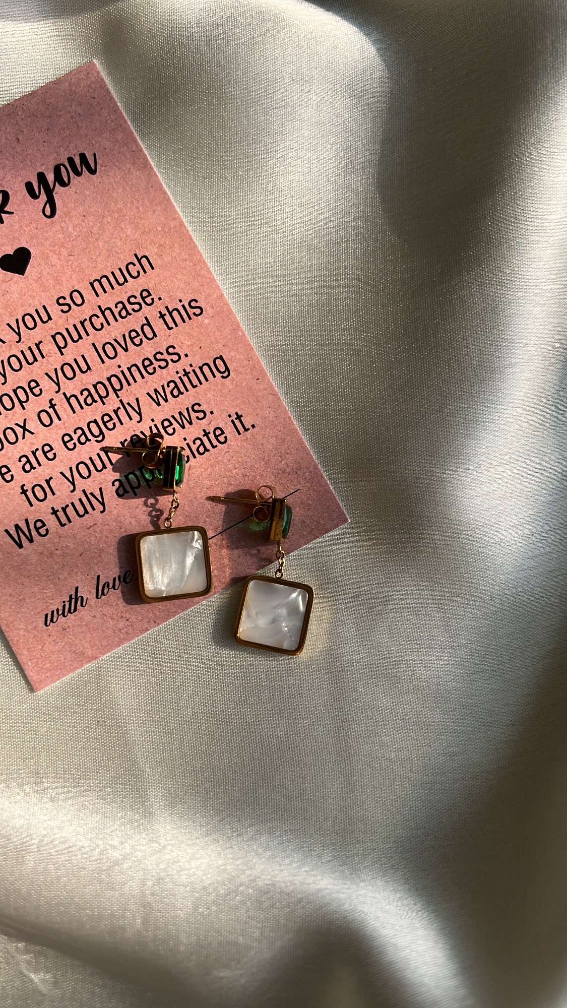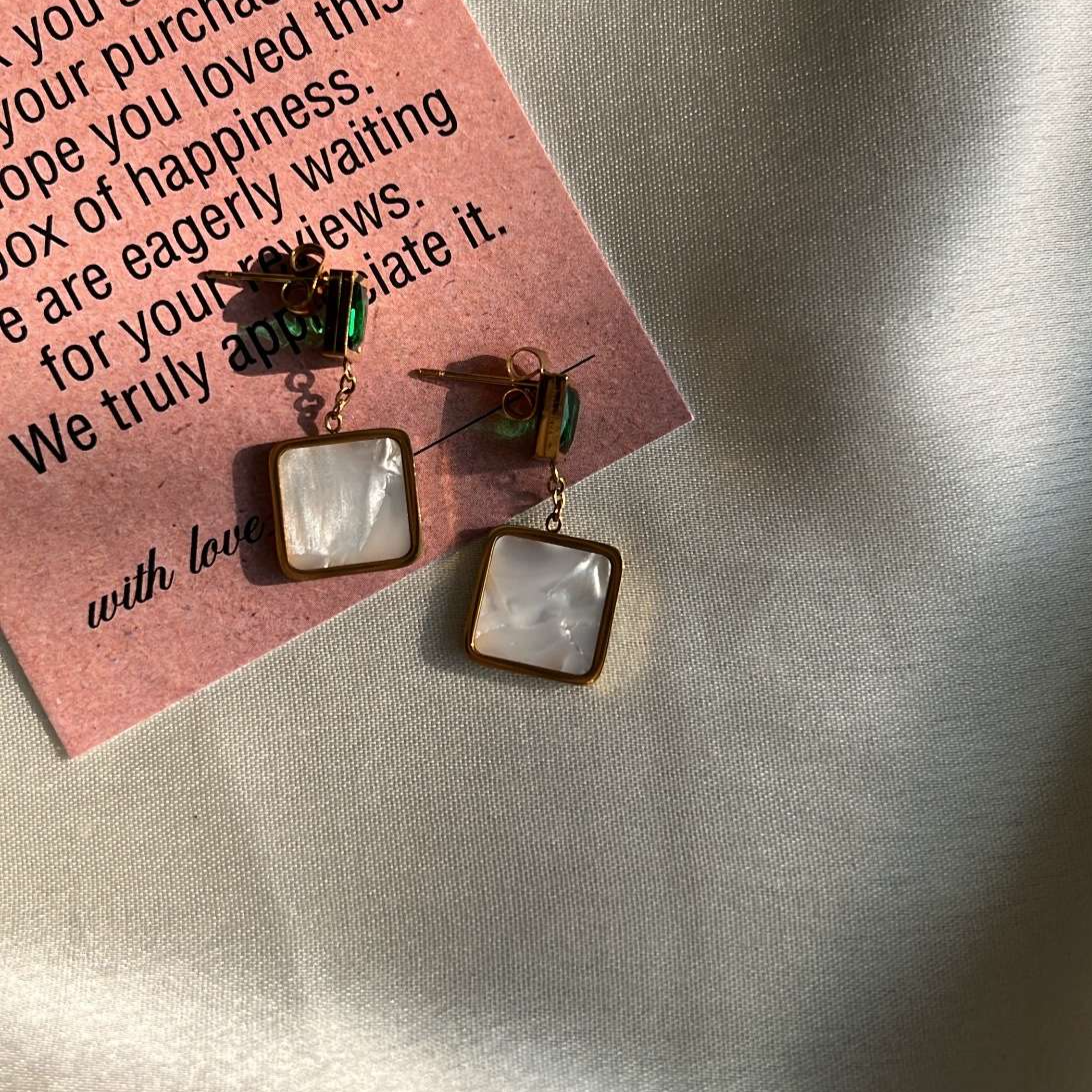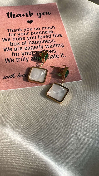 Elevate your look with our elegant green Kane drop earrings featuring a stunning white shell drop. Made from stainless steel, these anti-tarnish and waterproof earrings are sure to fetch you compliments from peers. Get ready to stand out and impress with this beautiful pair!