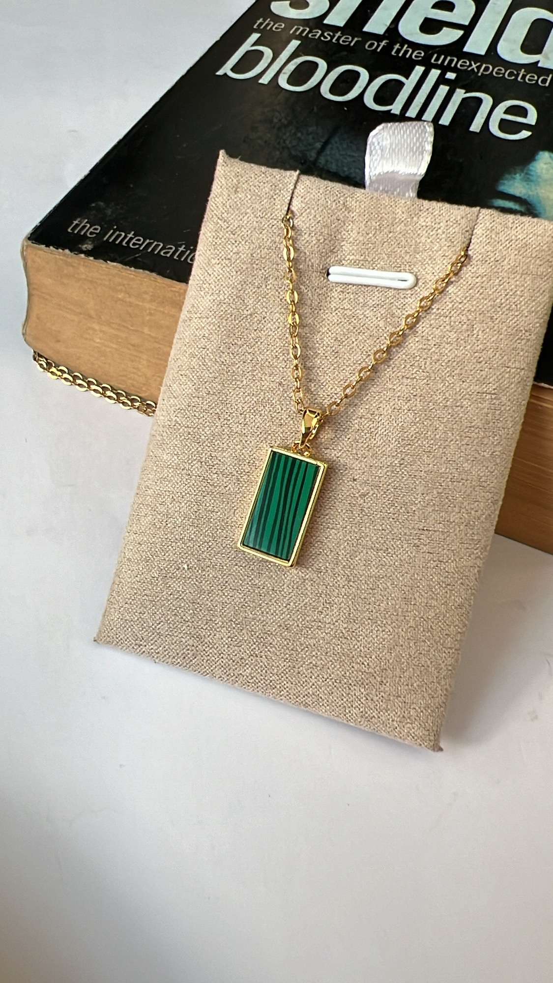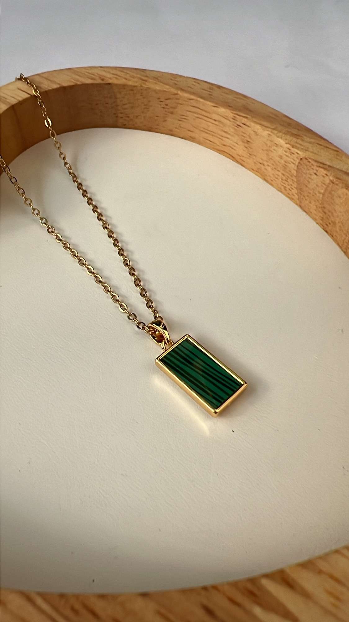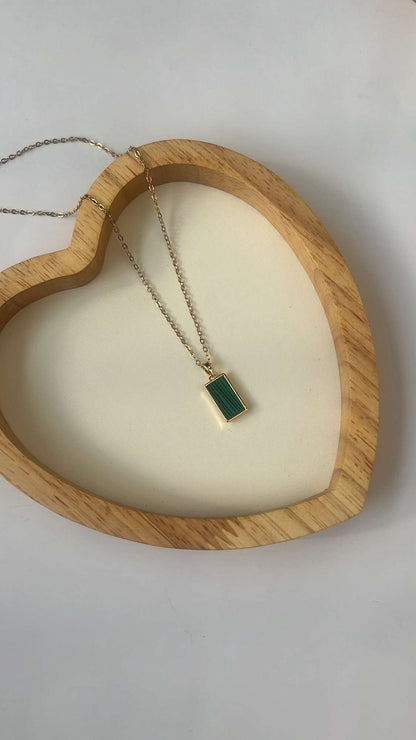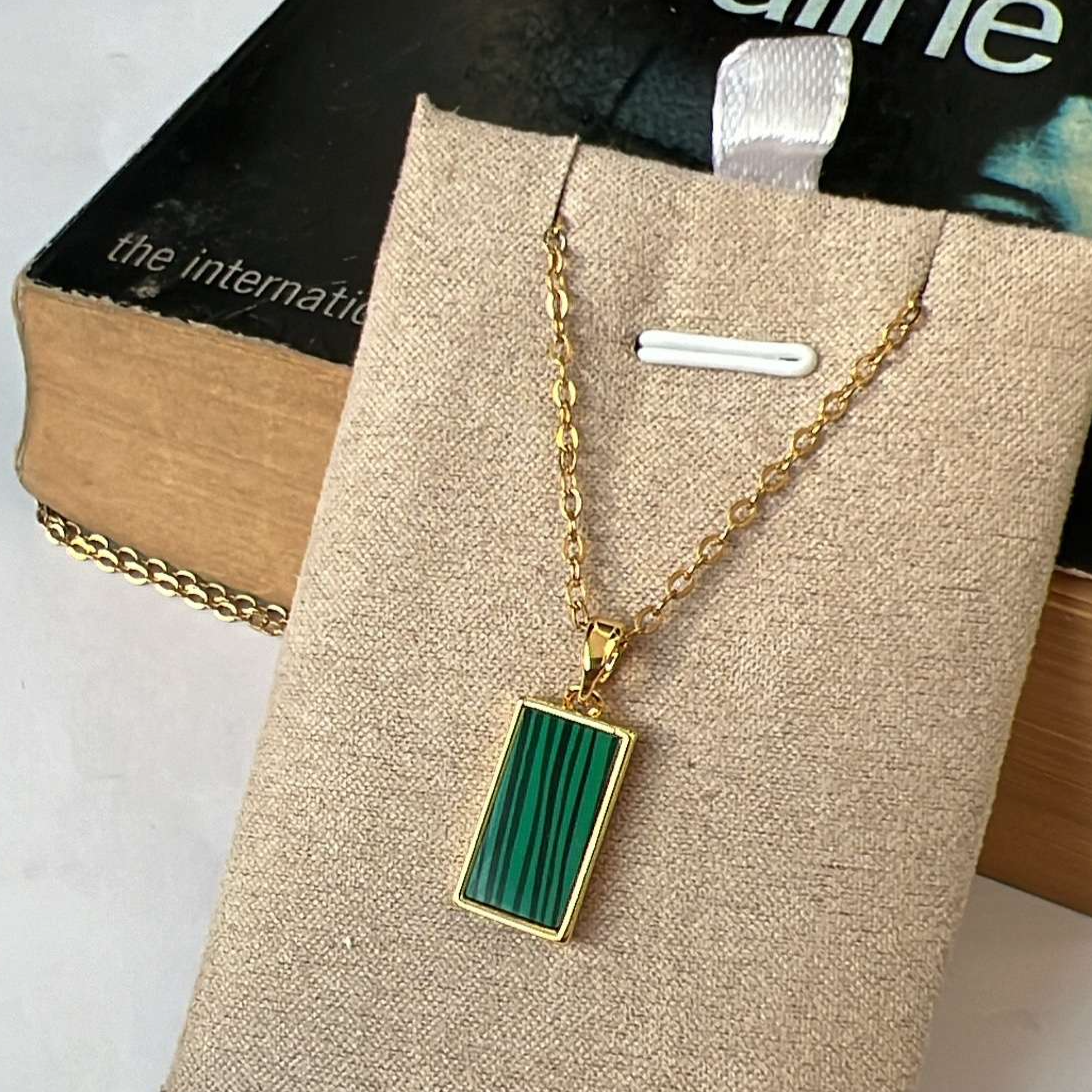 Elevate your style with our Lucy Emerald Neckpiece! The golden green textured pendant on a sleek stainless steel chain is 18" long and complemented with gold plating. Anti-tarnish, non-corrosive, and waterproof for long-lasting wear. Make a statement that's both bold and beautiful.