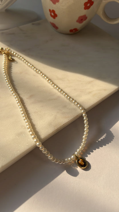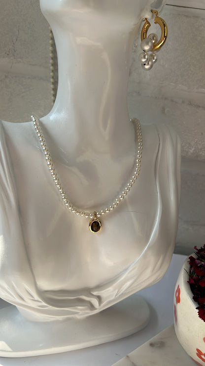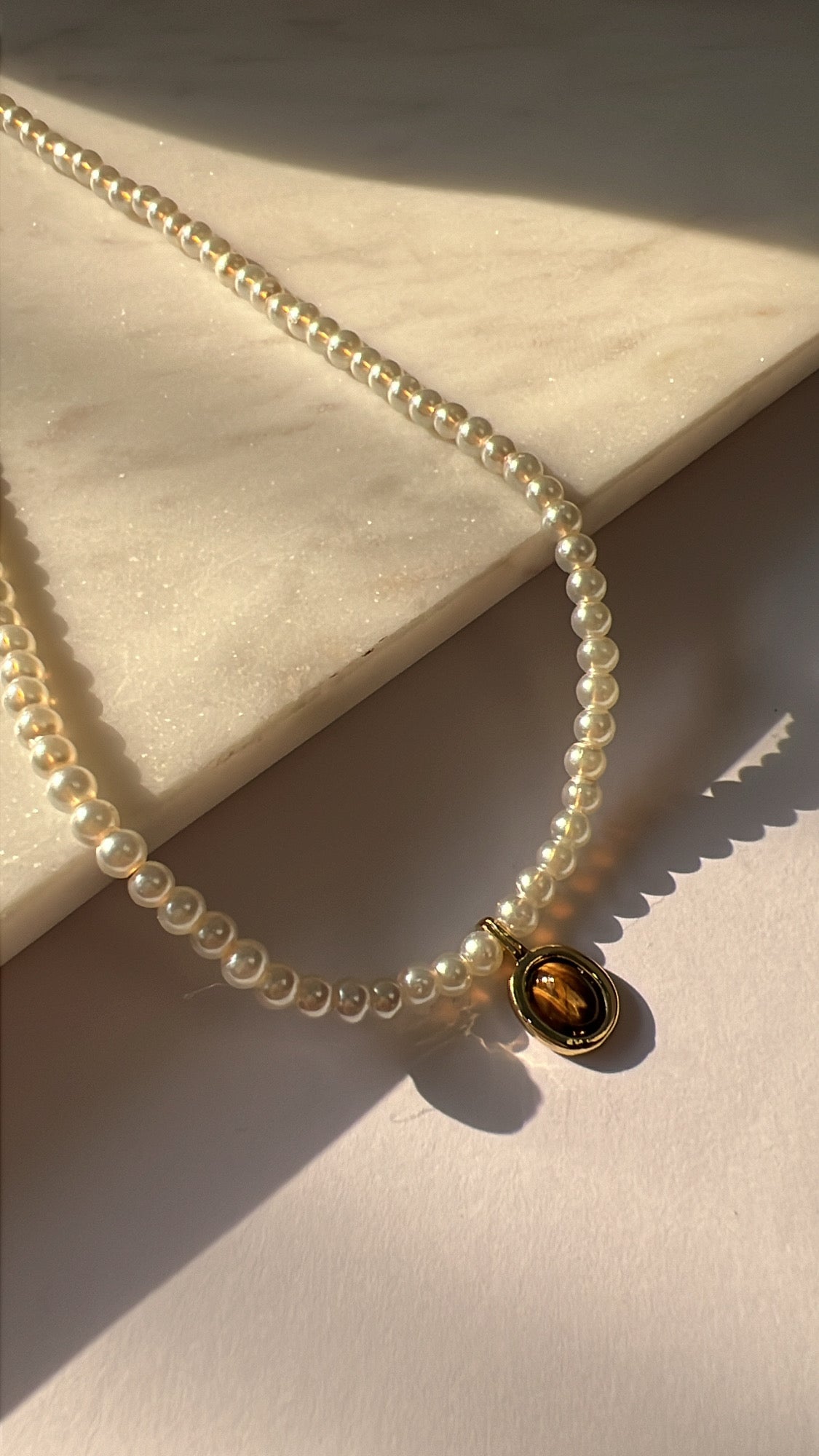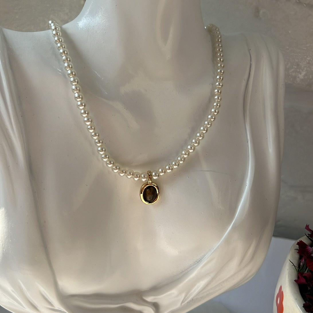 This exquisite pearl chain features a beautiful brown oval charm and is adjustable up to 18 inches. Crafted with high-quality materials, this neckpiece is both anti-tarnish and waterproof, ensuring long-lasting beauty.