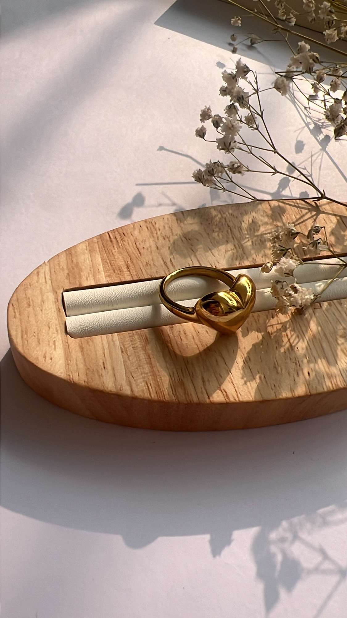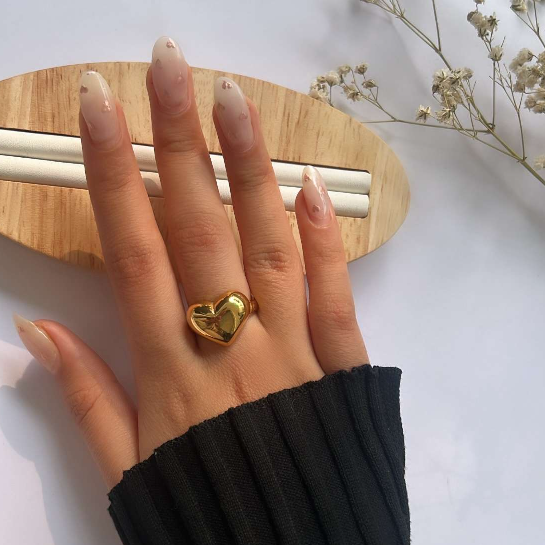 Show off your bold and stylish side with our gold puffed heart ring! Wear it alone for a chic look or stack it with other rings for a unique statement. This ring is hypoallergenic and waterproof, and the gold plating ensures it will keep its shine. Fits size 8 perfectly.