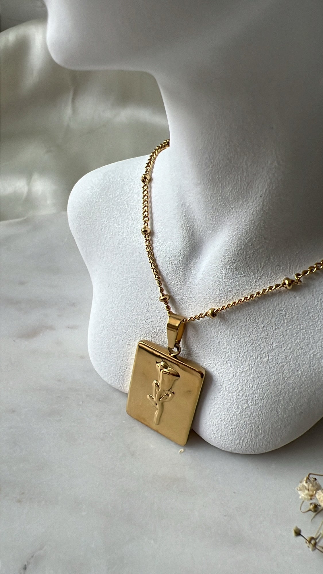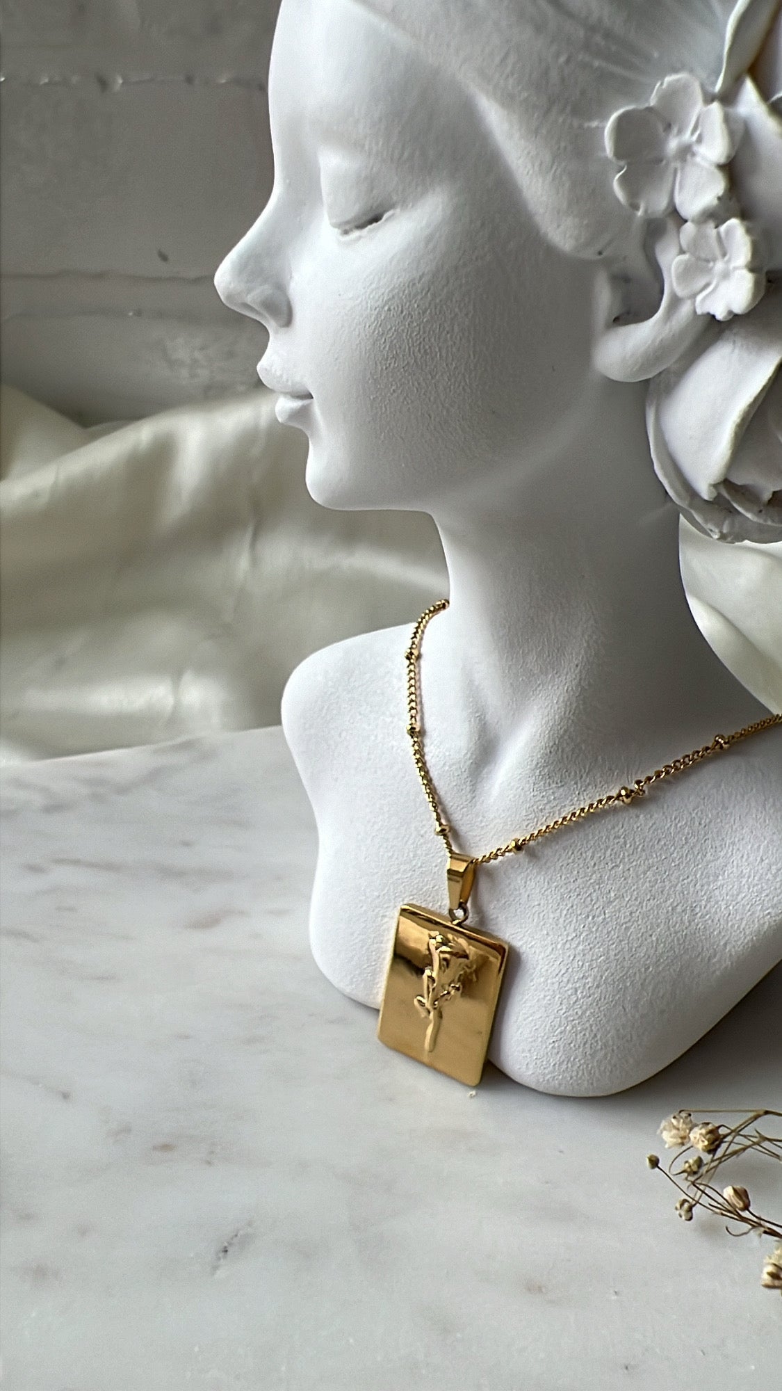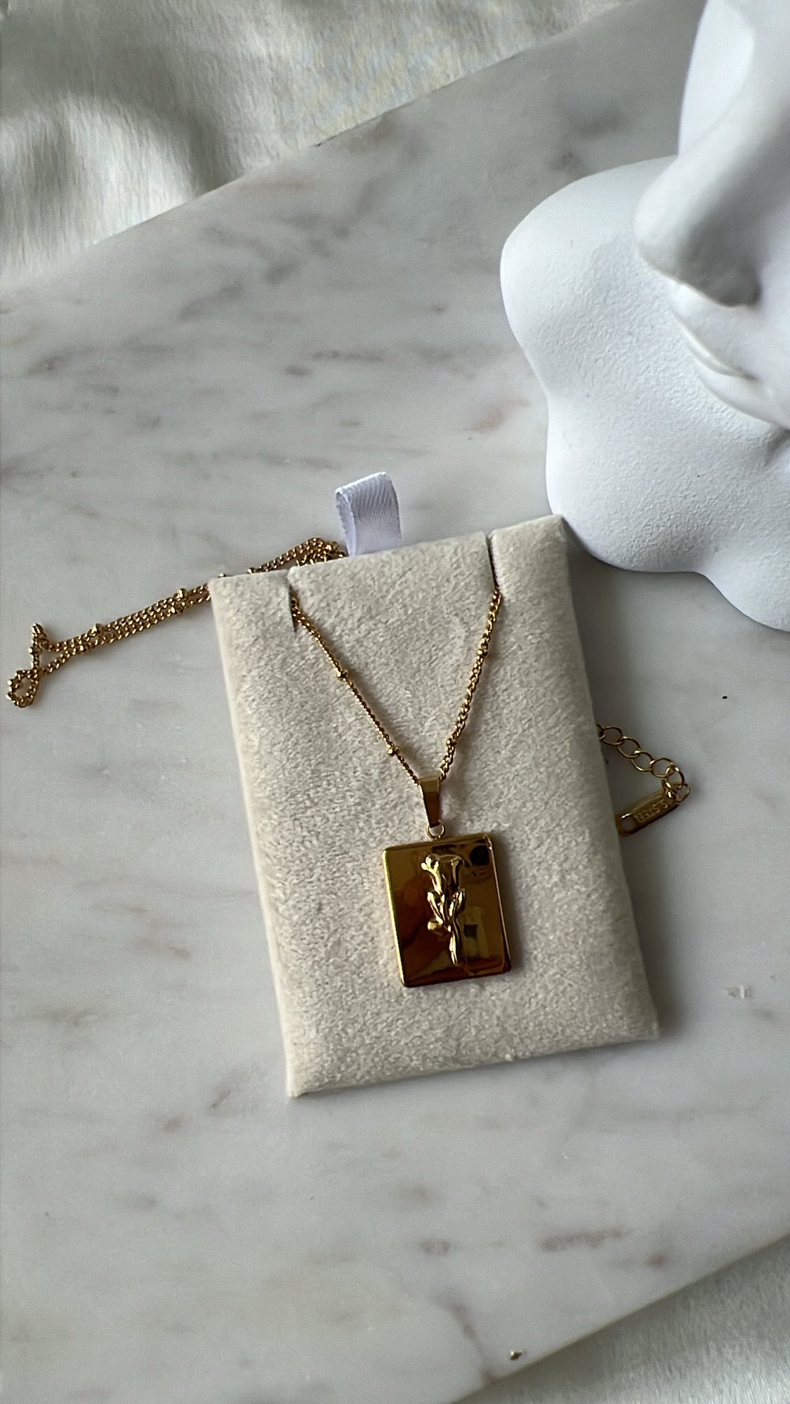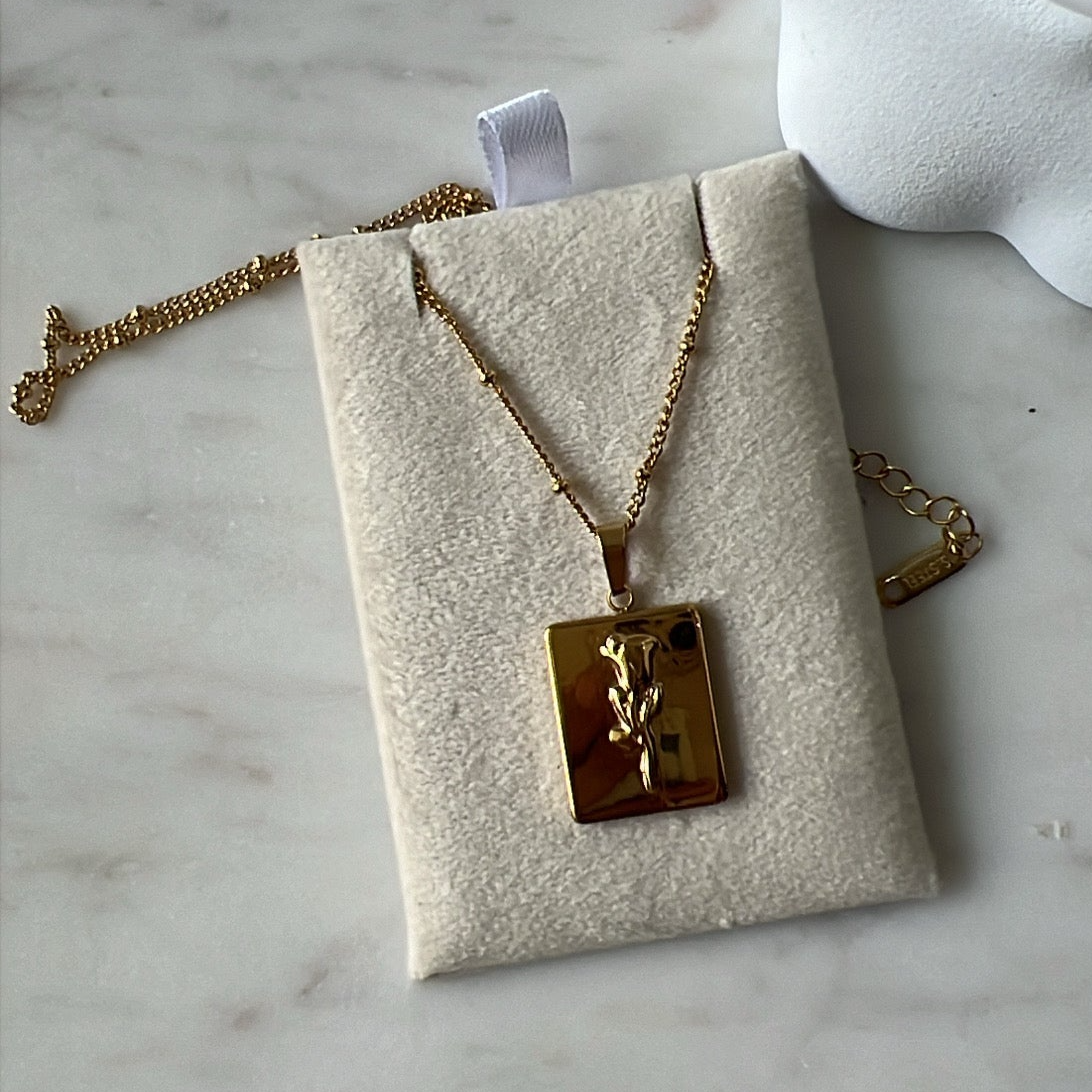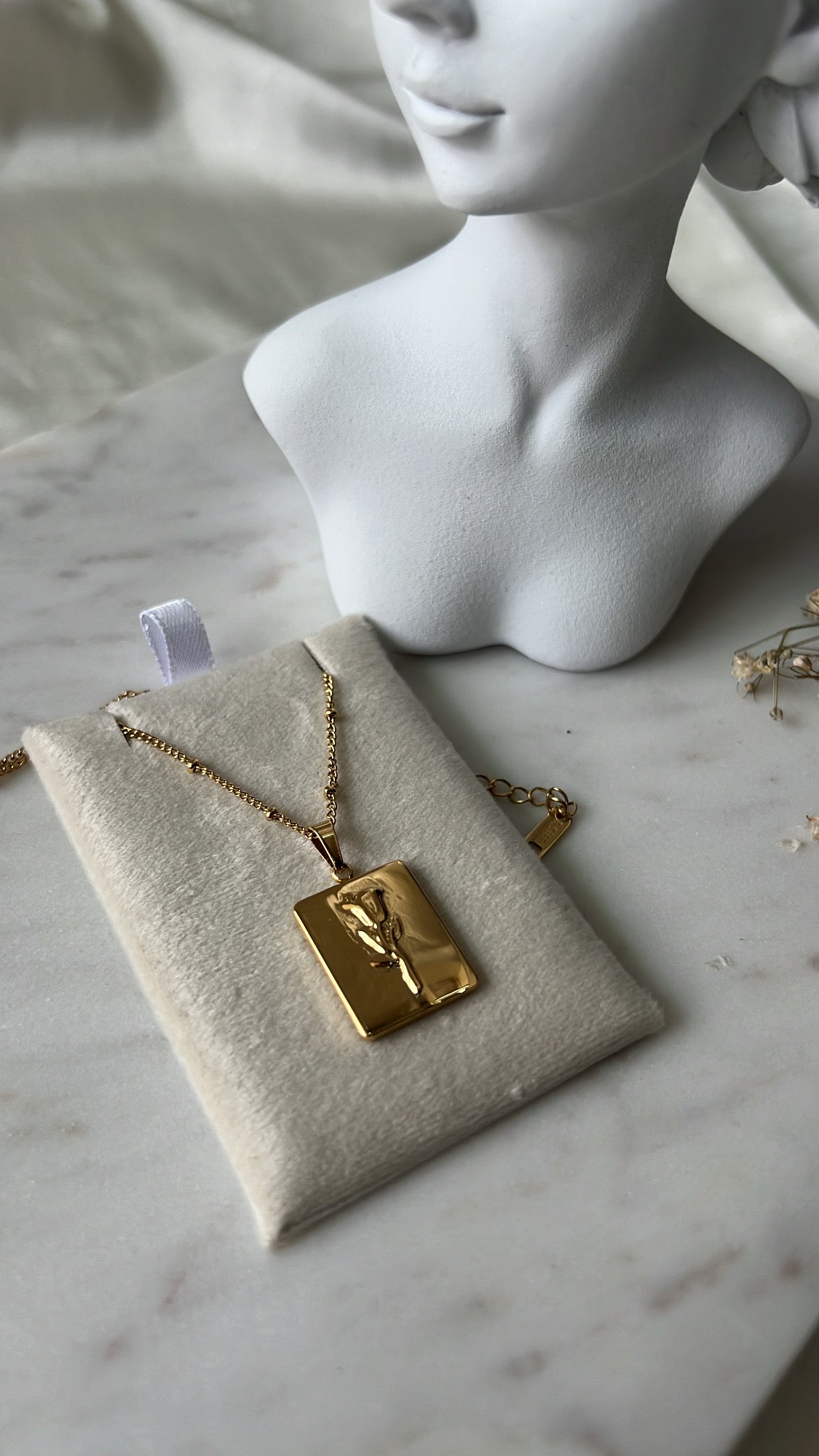 Elevate any look with our Rosè neckpiece. The minimal rose pendant in stainless steel exudes style while the gold plated chain is anti-tarnish, non-corrosive, and waterproof. Measuring at 16 inches with adjustable extensions, this necklace is both elegant and durable. Upgrade your jewelry game today!