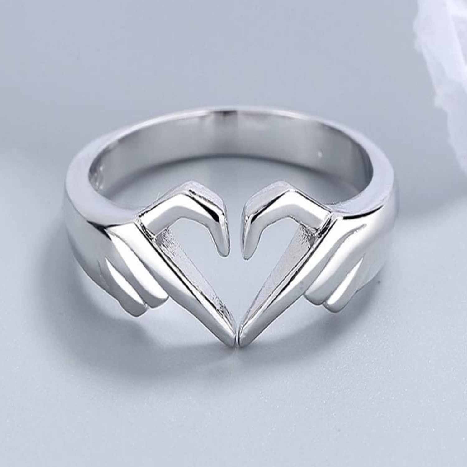 Silver Geometric Palm Love Gesture Couple Hands Than Heart Finger Thumb Ring