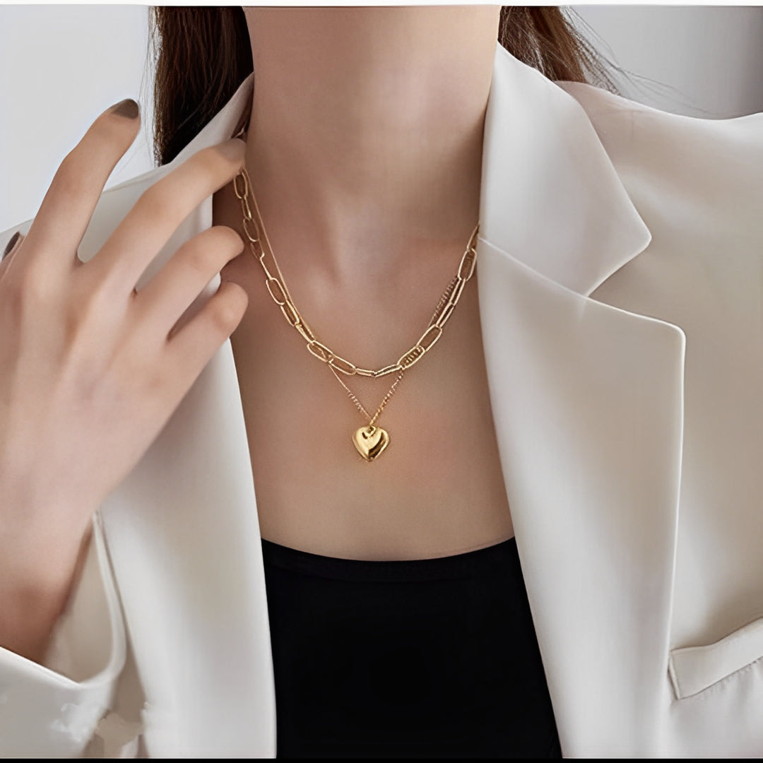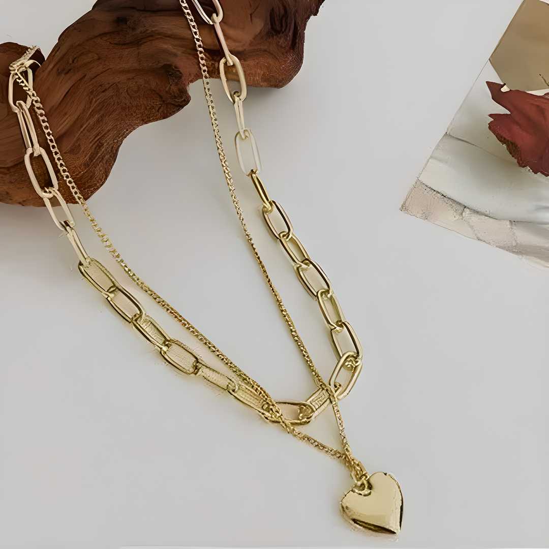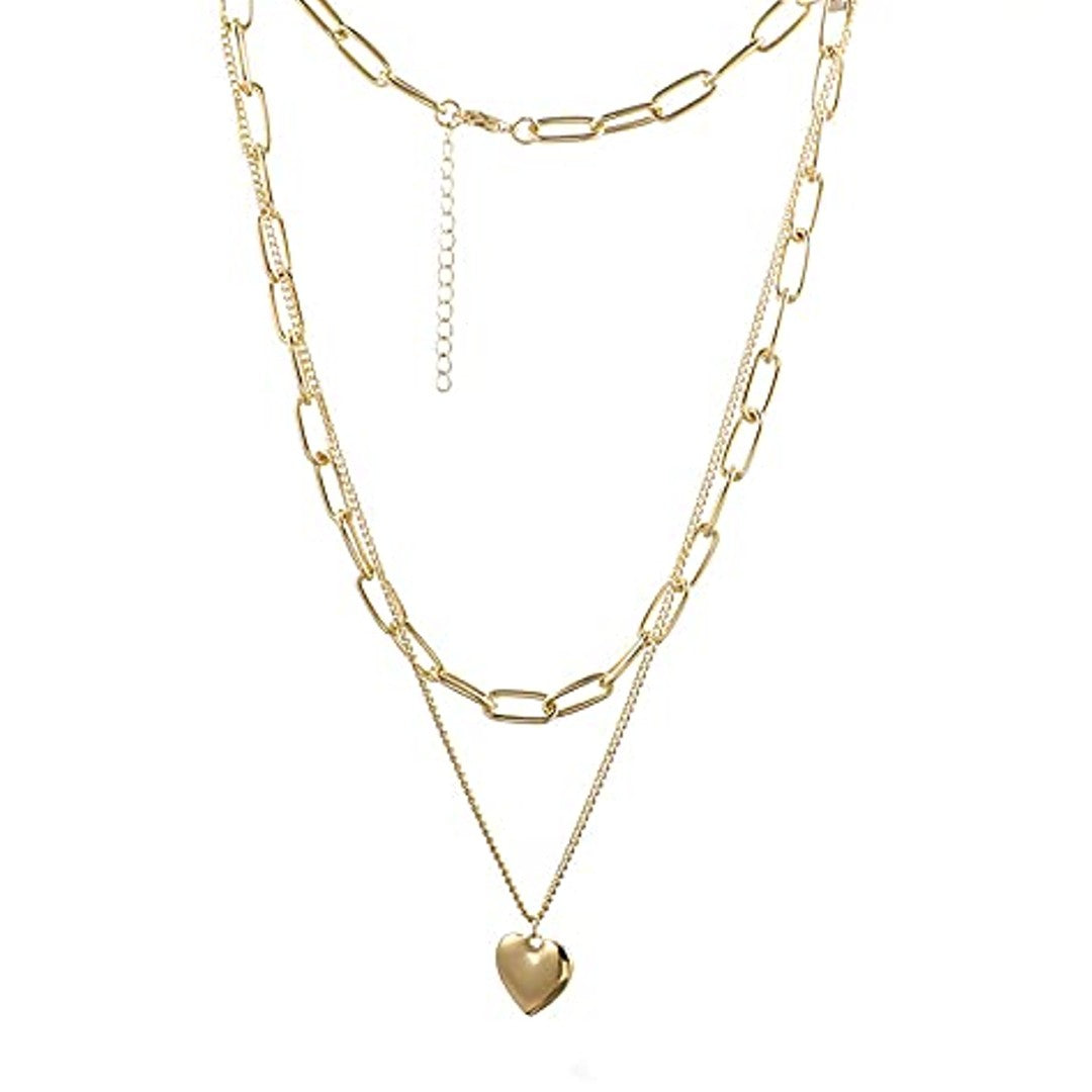 Two Layered Gold Plated Heart Shape Necklace Chain for Girls & Women